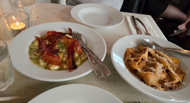 Back at Sagra today before we fly to Shanghai on Saturday. Gnocchi and pappardalle were delicious!